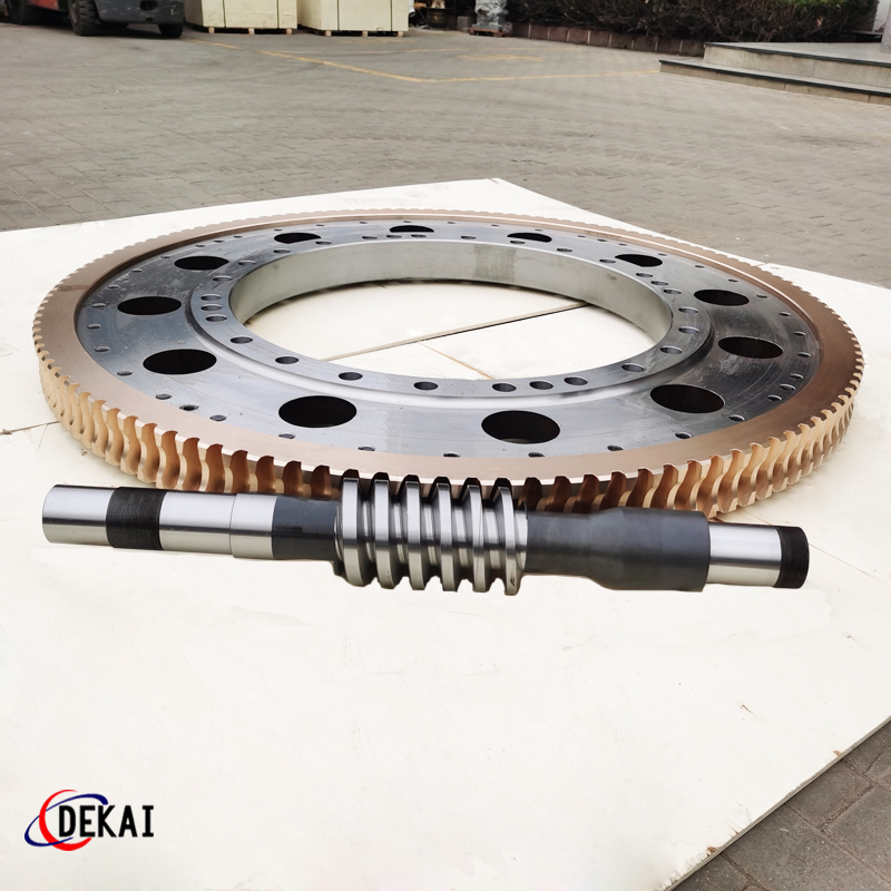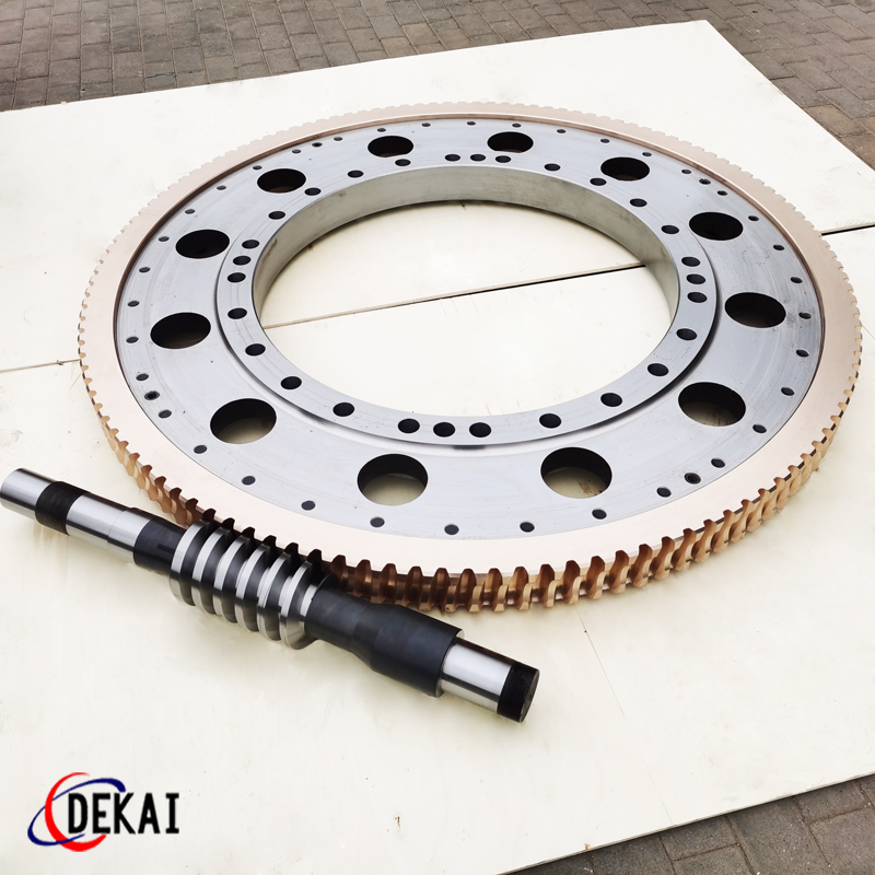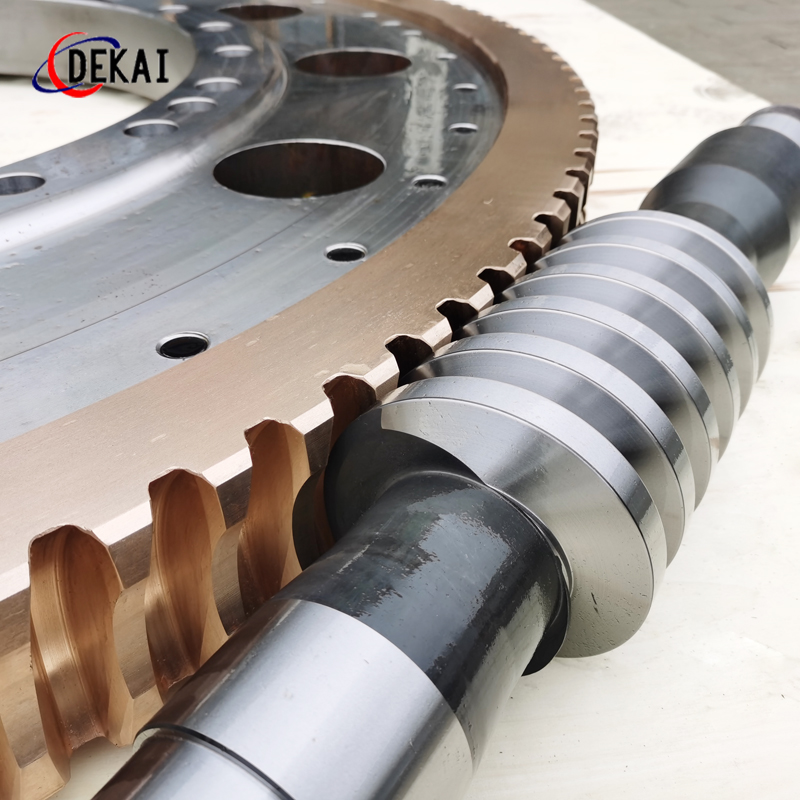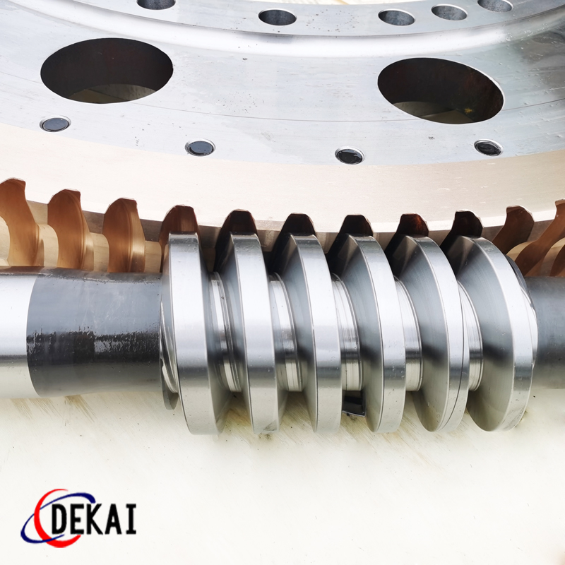 德州德凱減速傳動(dòng)機(jī)械有限公司采用雙蝸桿對(duì)消隙原理開(kāi)發(fā)生產(chǎn)的精密蝸輪蝸桿副,主要用于大型機(jī)床工作臺(tái)的驅(qū)動(dòng),高精密分割器等無(wú)間隙圓周運(yùn)動(dòng)精確定位場(chǎng)合。該蝸輪副中心距最大可做到2000mm,單節(jié)速比可做到1-365同時(shí)不產(chǎn)生回程間隙。